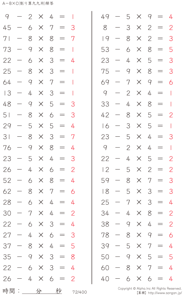 A-B×C [解答]072/400