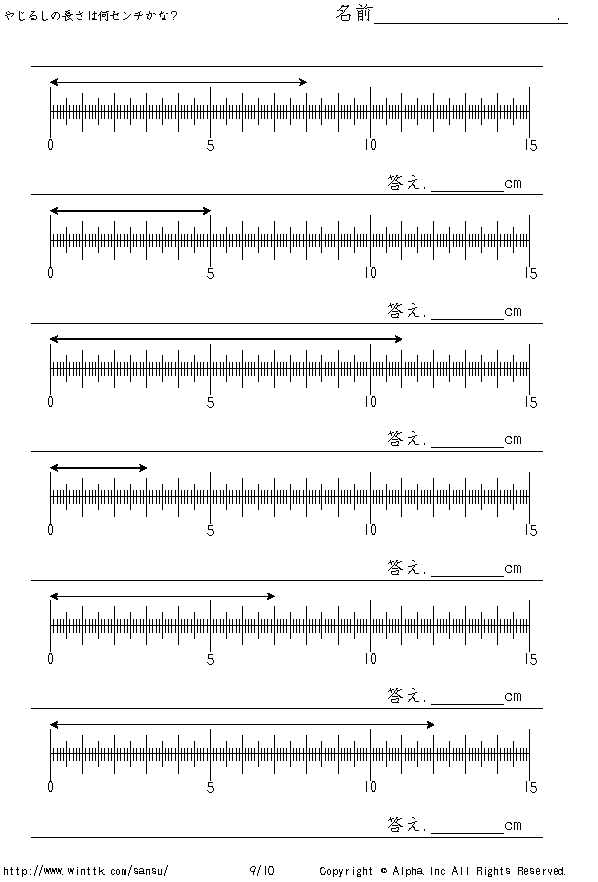 上記のボタンから「何センチかな?1」の算数数学ドリル・計算ドリル(PDFプリント)がダウンロードできます。個人利用は無料です(家庭以外での配布は有料です)。