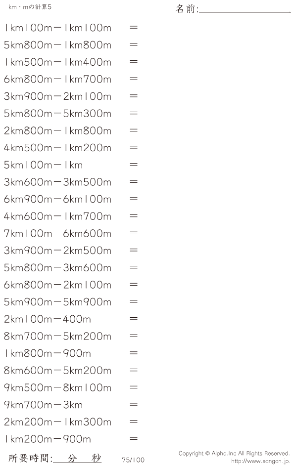km・mの引き算 [問題]075/100
