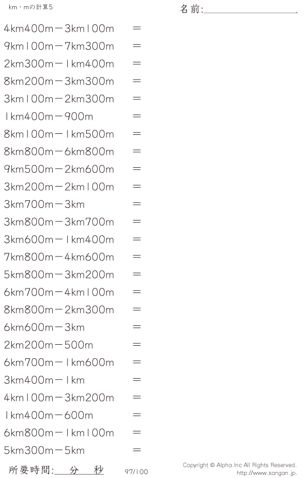 km・mの引き算 [問題]097/100