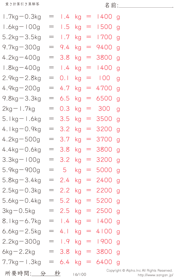 kg・gの引き算 [解答]016/100