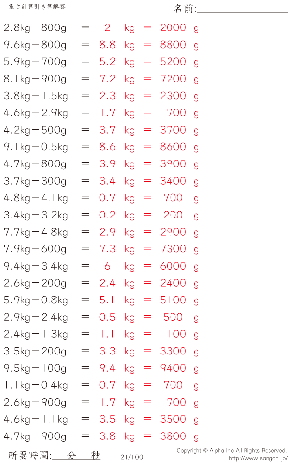 kg・gの引き算 [解答]021/100