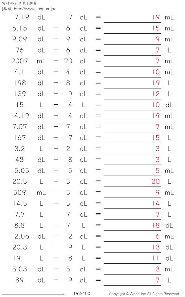 容積の引き算 [解答]192/400