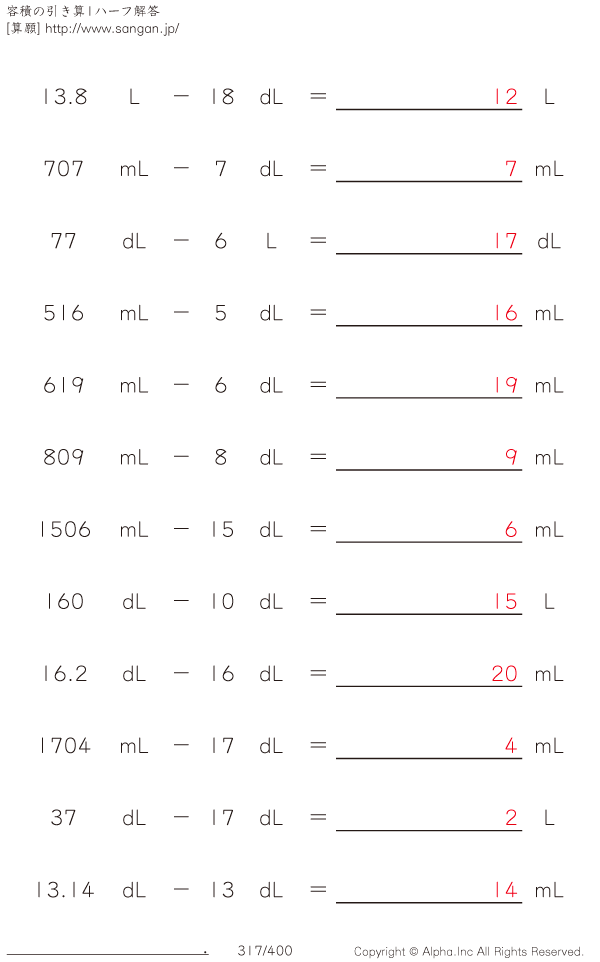 容積の引き算(ハーフ) [解答]317/400
