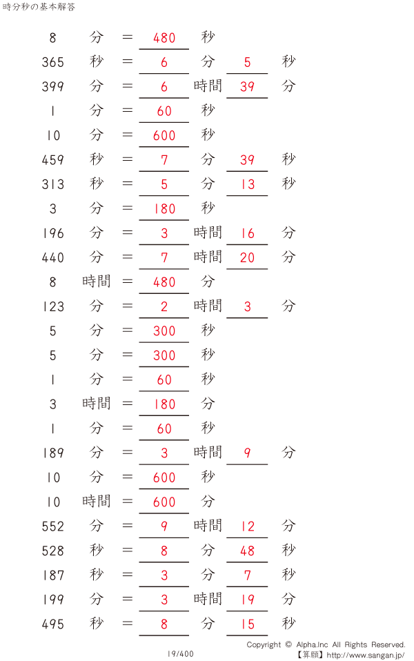 上記のボタンから「時分秒の基本」の算数数学ドリル・計算ドリル(PDFプリント)がダウンロードできます。個人利用は無料です(家庭以外での配布は有料です)。