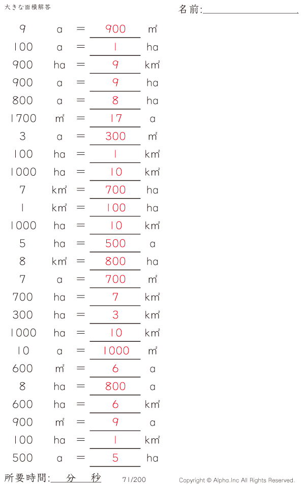 大きな面積・アール・ヘクタール [解答]071/200
