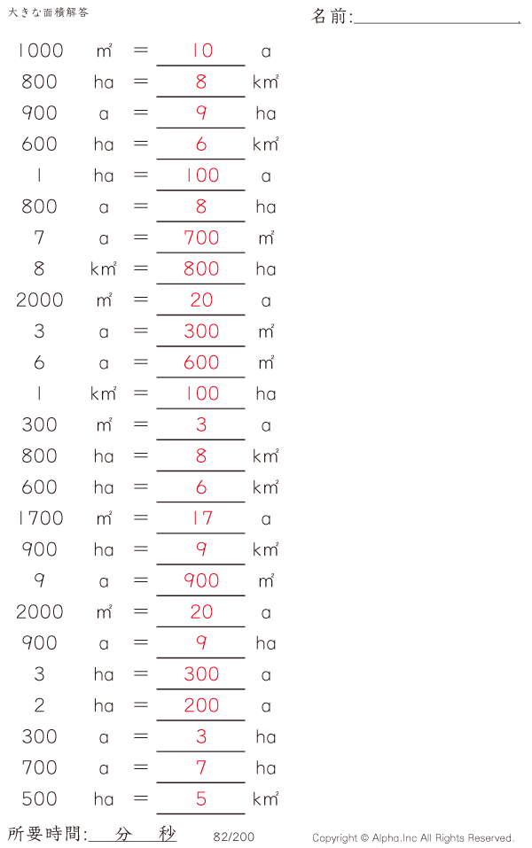大きな面積・アール・ヘクタール [解答]082/200