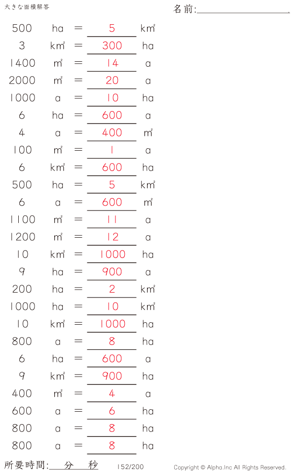 上記のボタンから「大きな面積・アール・ヘクタール」の算数数学ドリル・計算ドリル(PDFプリント)がダウンロードできます。個人利用は無料です(家庭以外での配布は有料です)。