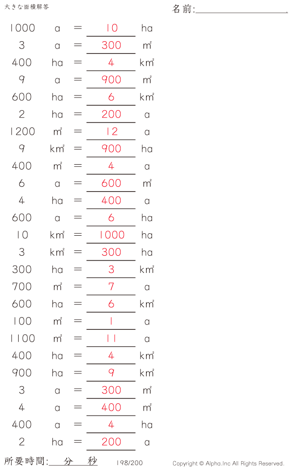 大きな面積・アール・ヘクタール [解答]198/200