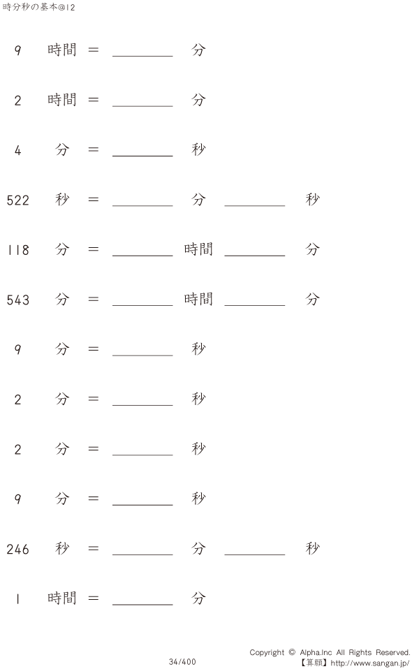 時分秒の基本@12 [問題]034/400