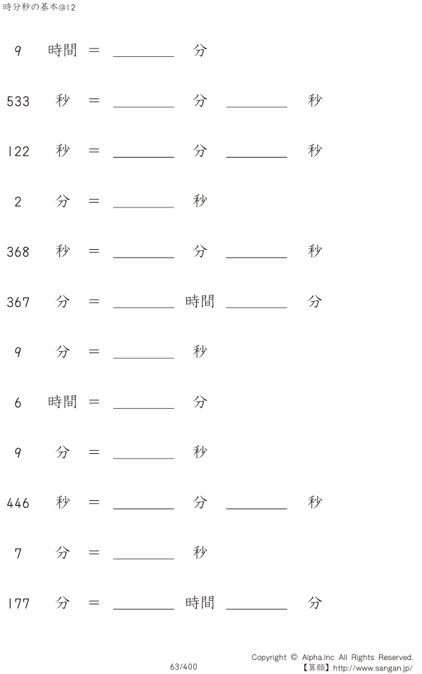 時分秒の基本@12 [問題]063/400