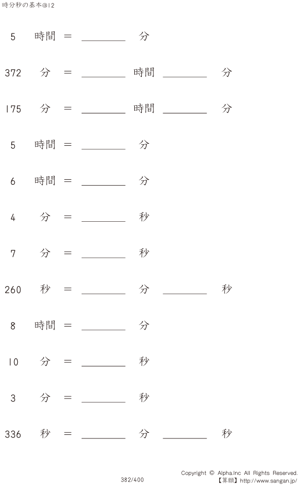 時分秒の基本@12 [問題]382/400