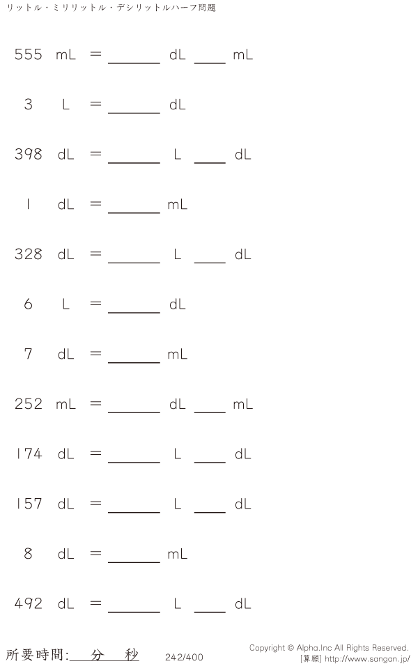 リットル・デシリットル・ミリリットル@12 [問題]242/400