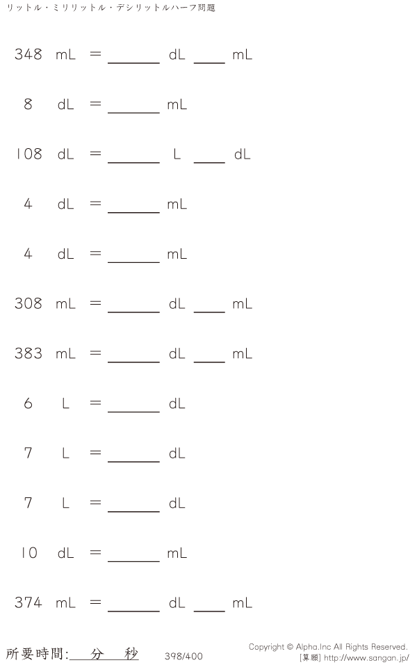 リットル・デシリットル・ミリリットル@12 [問題]398/400