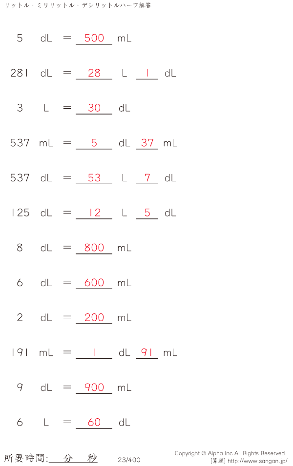リットル・デシリットル・ミリリットル@12 [解答]023/400