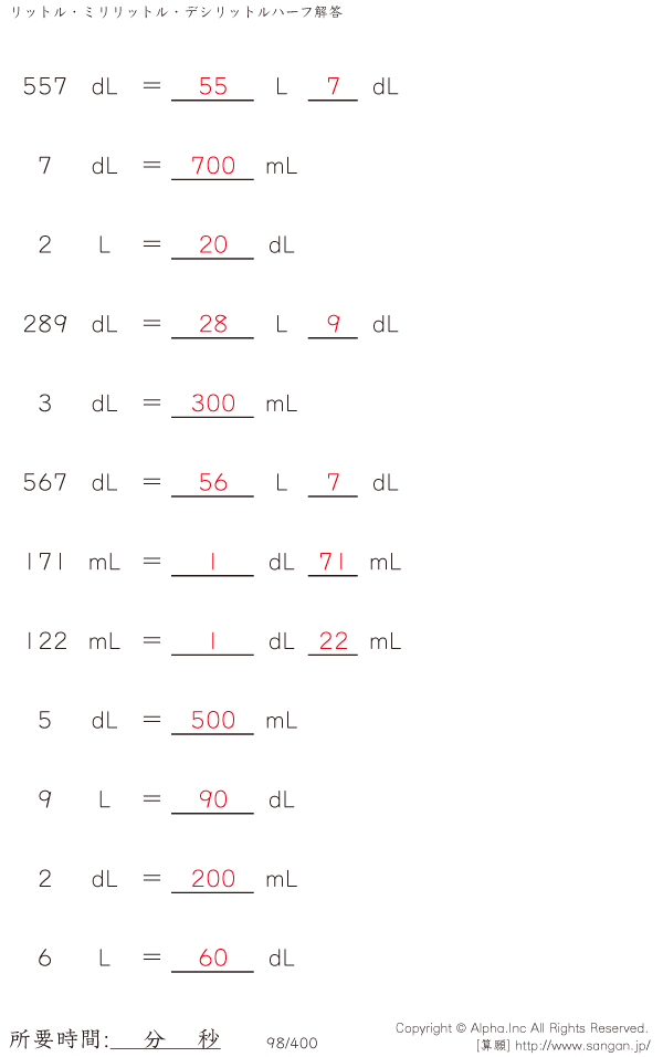 リットル・デシリットル・ミリリットル@12 [解答]098/400