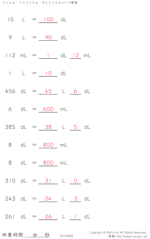 リットル・デシリットル・ミリリットル@12 [解答]151/400