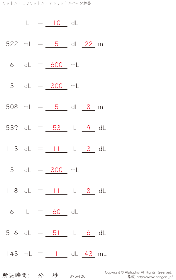 リットル・デシリットル・ミリリットル@12 [解答]375/400