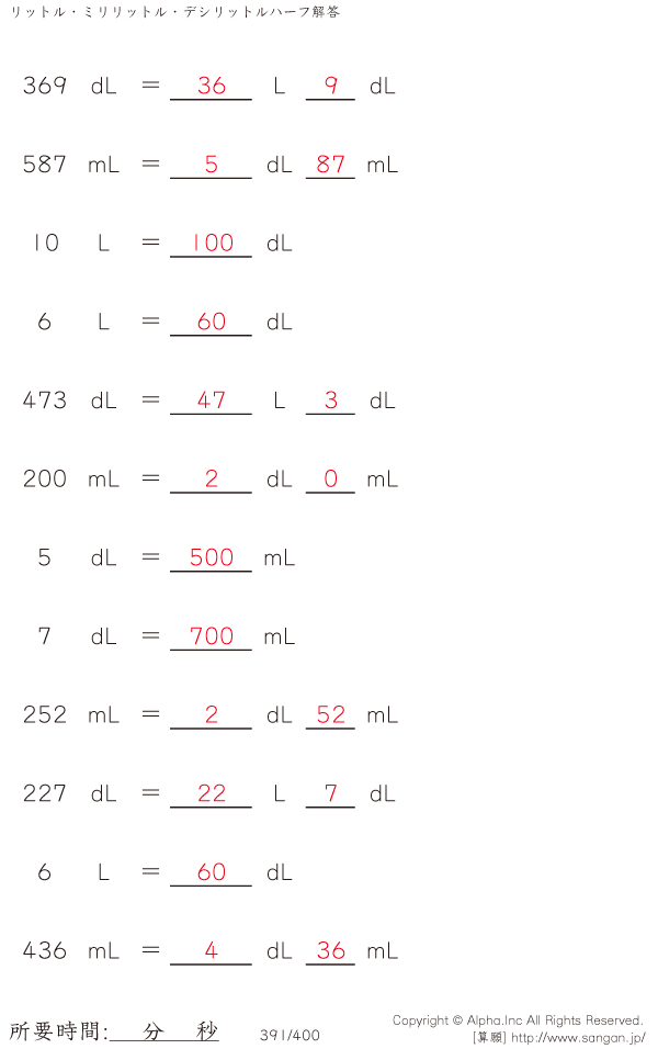 リットル・デシリットル・ミリリットル@12 [解答]391/400