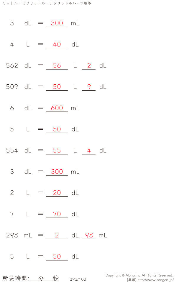 リットル・デシリットル・ミリリットル@12 [解答]393/400