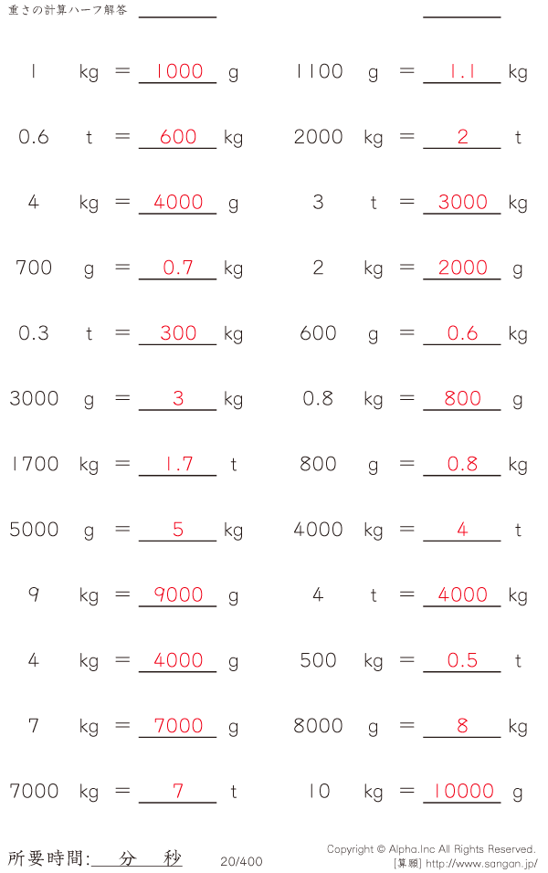 上記のボタンから「グラム・キロ・トン@24」の算数数学ドリル・計算ドリル(PDFプリント)がダウンロードできます。個人利用は無料です(家庭以外での配布は有料です)。