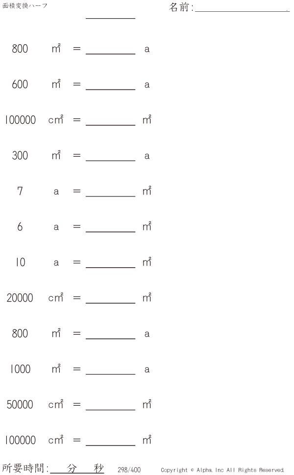 上記のボタンから「面積変換@12」の算数数学ドリル・計算ドリル(PDFプリント)がダウンロードできます。個人利用は無料です(家庭以外での配布は有料です)。