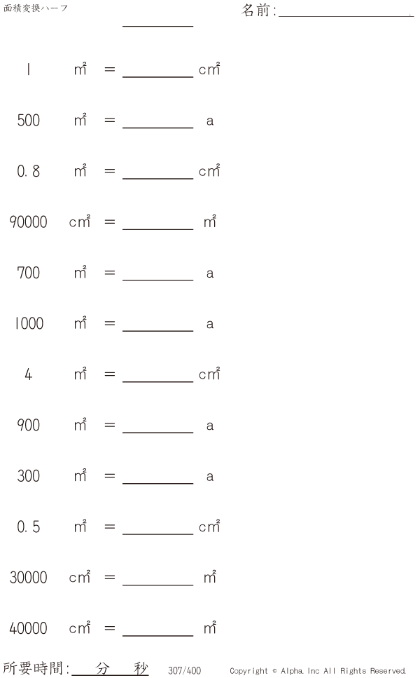 上記のボタンから「面積変換@12」の算数数学ドリル・計算ドリル(PDFプリント)がダウンロードできます。個人利用は無料です(家庭以外での配布は有料です)。
