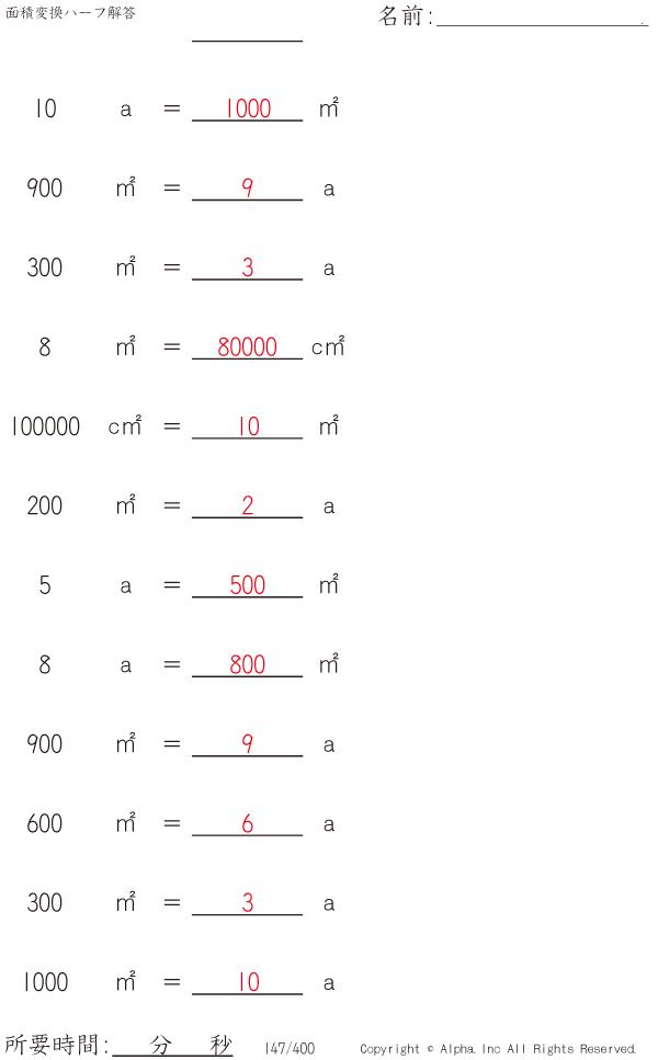上記のボタンから「面積変換@12」の算数数学ドリル・計算ドリル(PDFプリント)がダウンロードできます。個人利用は無料です(家庭以外での配布は有料です)。