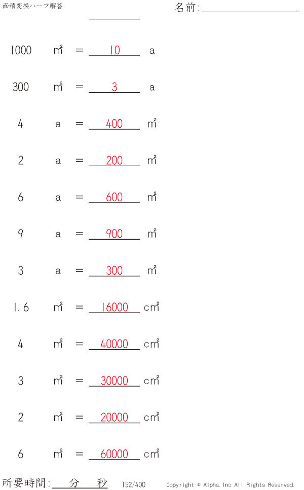 上記のボタンから「面積変換@12」の算数数学ドリル・計算ドリル(PDFプリント)がダウンロードできます。個人利用は無料です(家庭以外での配布は有料です)。