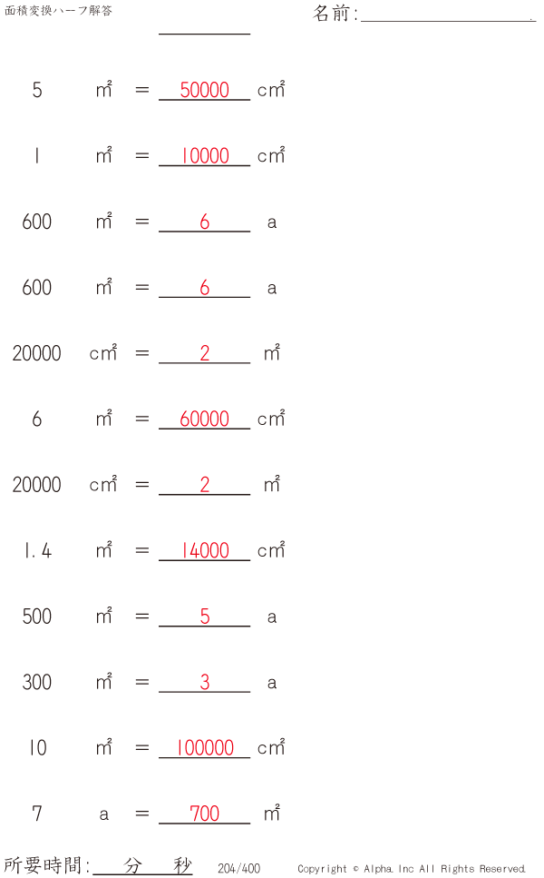 上記のボタンから「面積変換@12」の算数数学ドリル・計算ドリル(PDFプリント)がダウンロードできます。個人利用は無料です(家庭以外での配布は有料です)。
