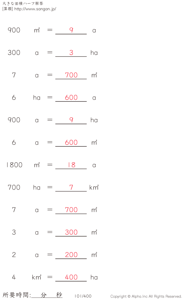 大きな面積・アール・ヘクタール@12 [解答]101/400