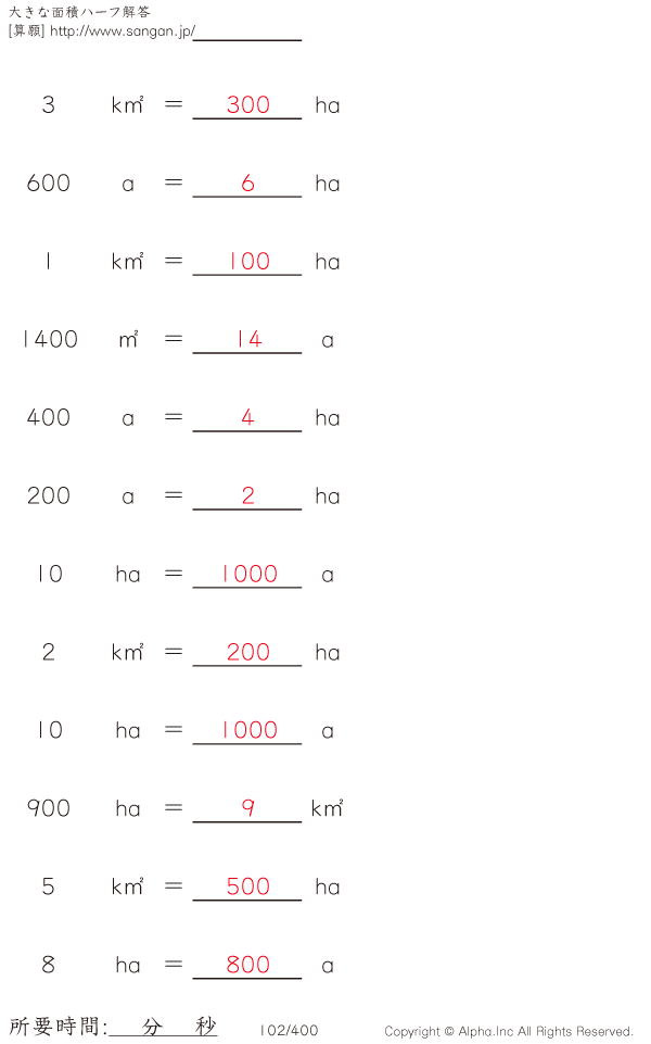 大きな面積・アール・ヘクタール@12 [解答]102/400