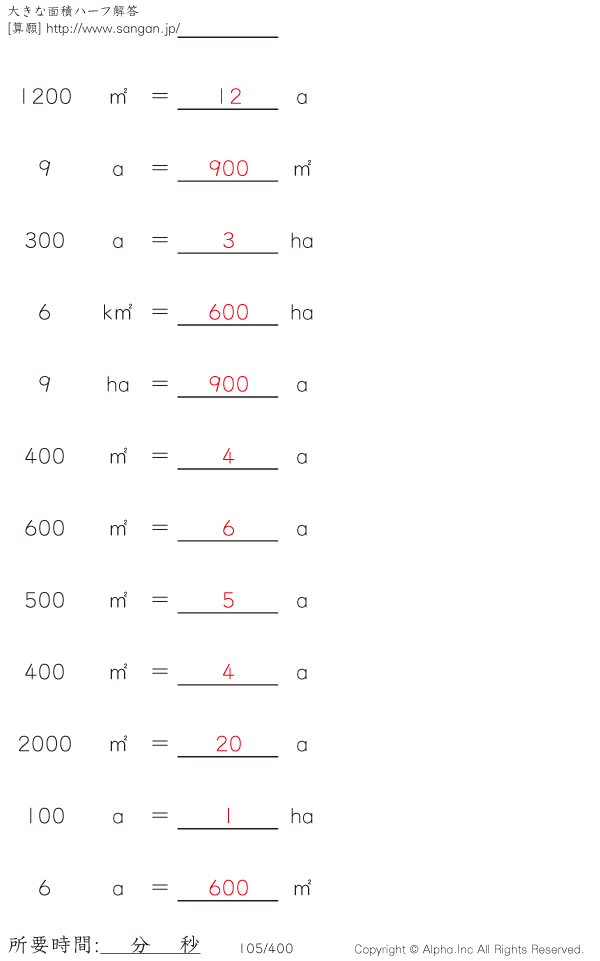 大きな面積・アール・ヘクタール@12 [解答]105/400