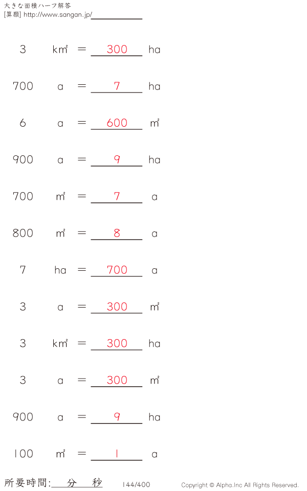 大きな面積・アール・ヘクタール@12 [解答]144/400