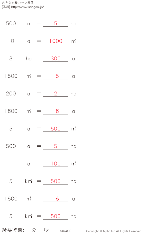 大きな面積・アール・ヘクタール@12 [解答]160/400