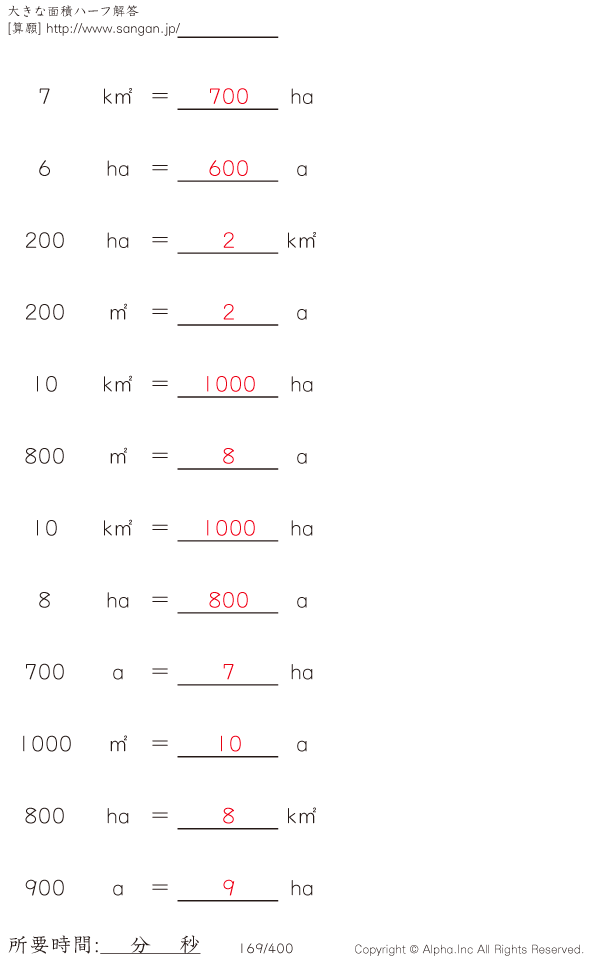 大きな面積・アール・ヘクタール@12 [解答]169/400