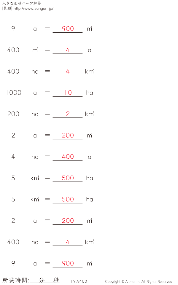 大きな面積・アール・ヘクタール@12 [解答]177/400