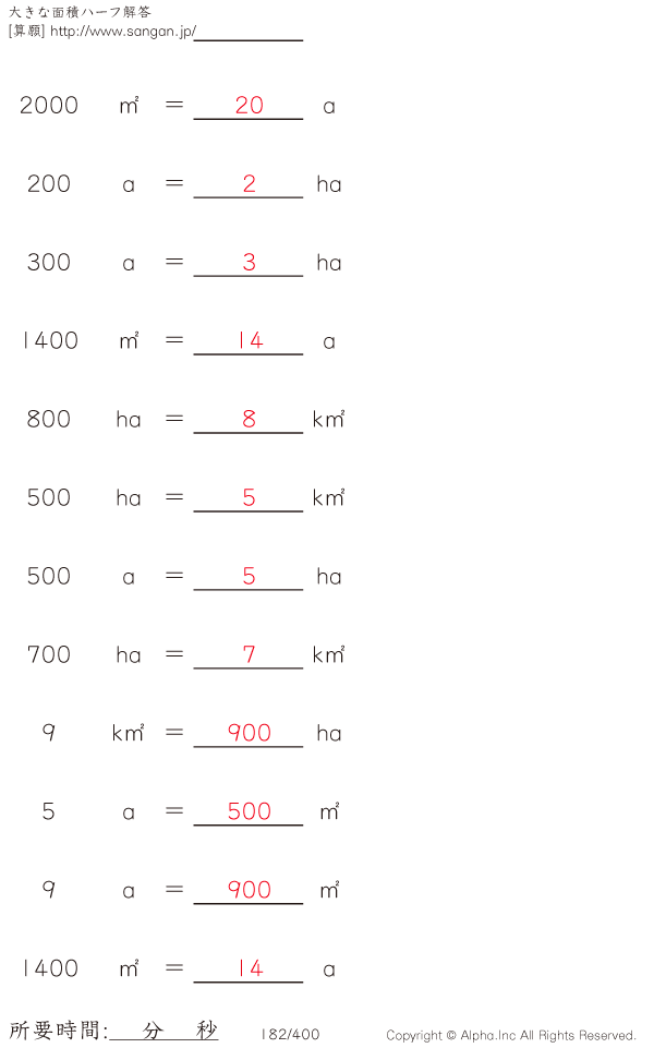大きな面積・アール・ヘクタール@12 [解答]182/400