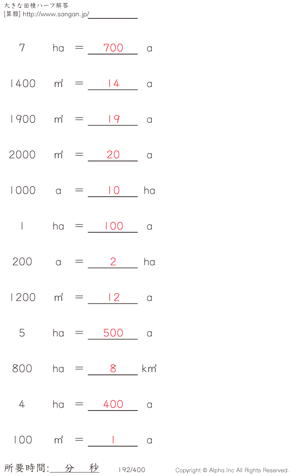 大きな面積・アール・ヘクタール@12 [解答]192/400