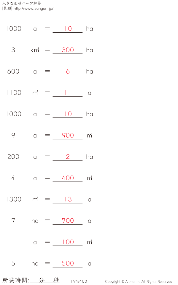 大きな面積・アール・ヘクタール@12 [解答]194/400