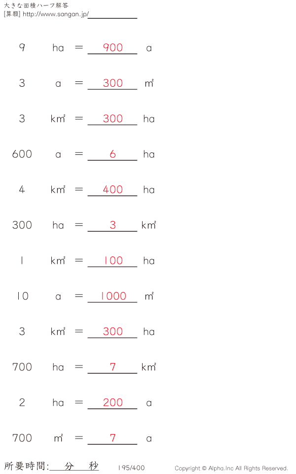 大きな面積・アール・ヘクタール@12 [解答]195/400