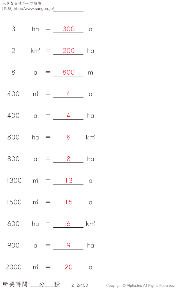 大きな面積・アール・ヘクタール@12 [解答]212/400