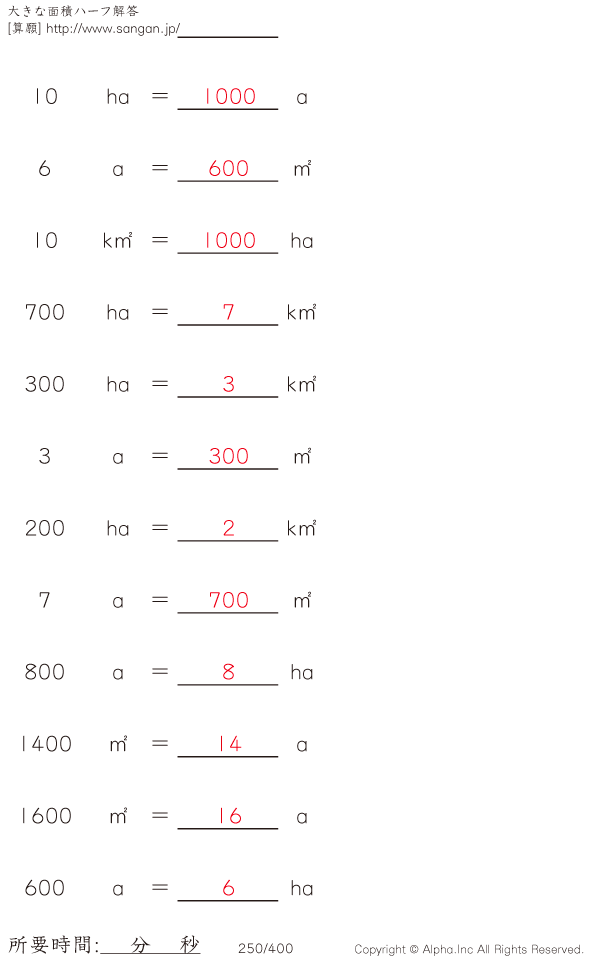 大きな面積・アール・ヘクタール@12 [解答]250/400