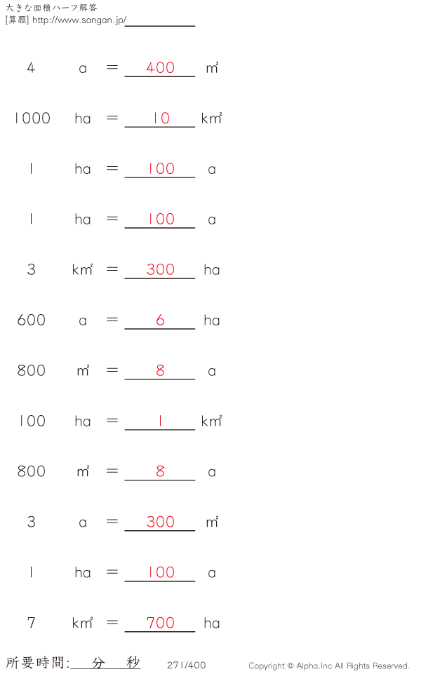 大きな面積・アール・ヘクタール@12 [解答]271/400