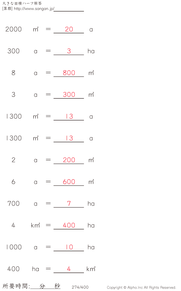 大きな面積・アール・ヘクタール@12 [解答]274/400
