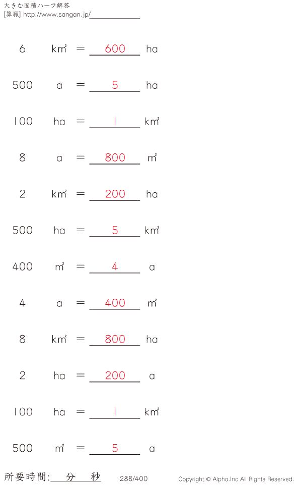 大きな面積・アール・ヘクタール@12 [解答]288/400