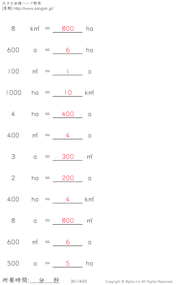 大きな面積・アール・ヘクタール@12 [解答]301/400