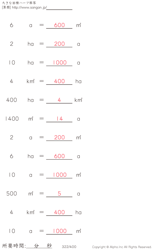 大きな面積・アール・ヘクタール@12 [解答]322/400