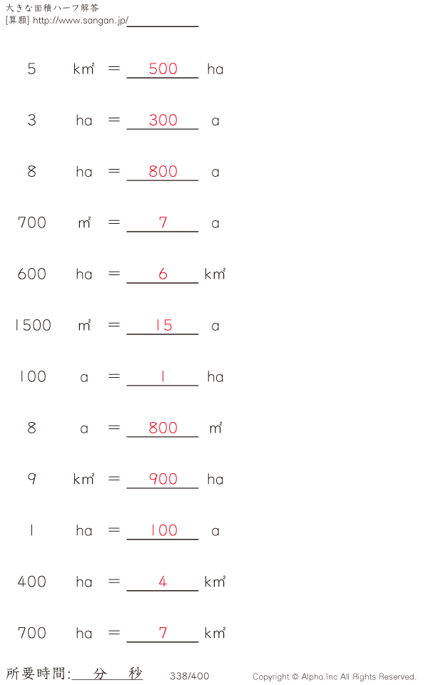 大きな面積・アール・ヘクタール@12 [解答]338/400