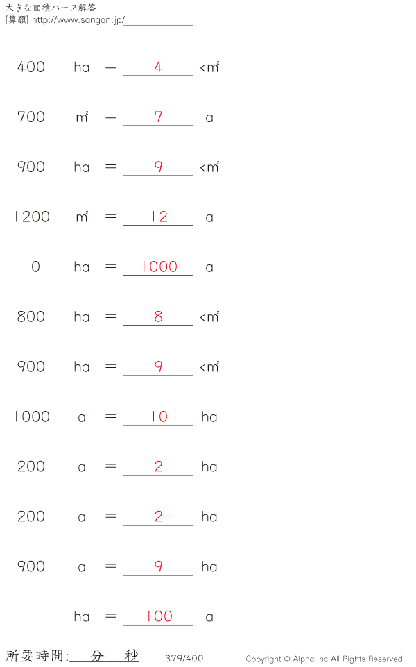 大きな面積・アール・ヘクタール@12 [解答]379/400